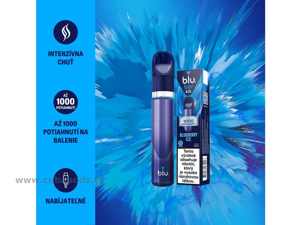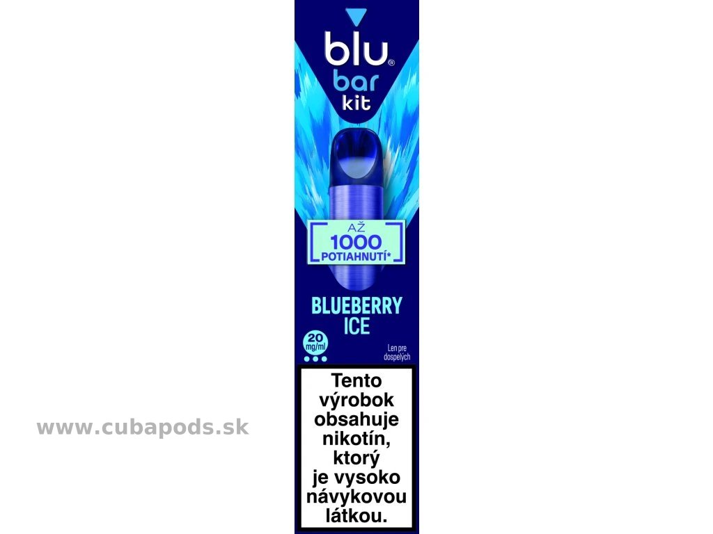 Jednorazová e-cigareta Blu Bar Kit • Blueberry Ice • 20 mg/ml • 1000 potiahnutí • ovocná chuť s chladivým efektom • 18+