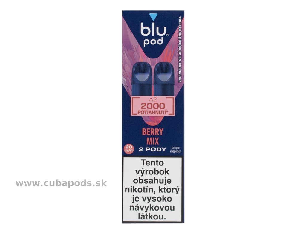 Blu Bar Pod Berry Mix je náhradná pod náplň pre zariadenia Blu Bar s obsahom nikotínu 20 mg/ml. Prináša ovocnú kombináciu sladkých lesných plodov so sviežim ľadovým efektom. Jednoduché používanie – stačí zasunúť do zariadenia, bez dopĺňania a bez údržby.