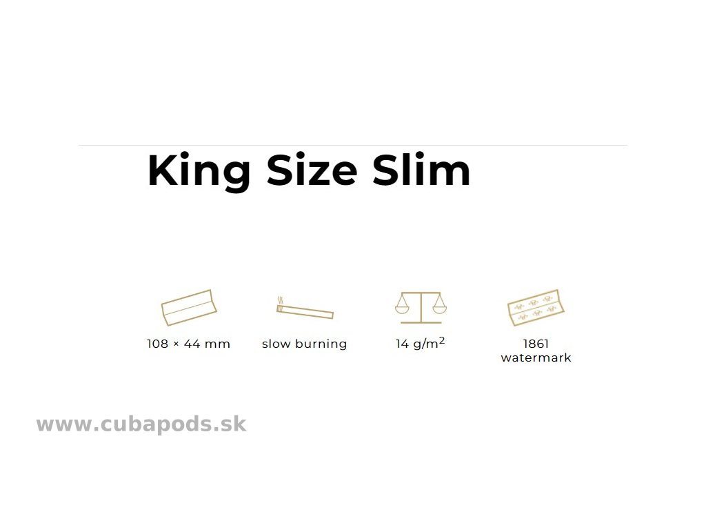 - Rozmer: 108 × 44 mm – King Size Slim formát.