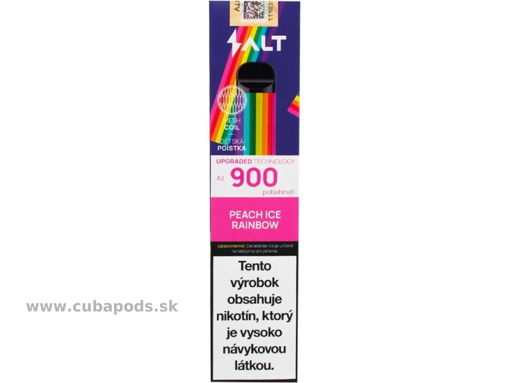 Salt Switch 900 Rainbow Peach Ice 20 mg – jednorazová e-cigareta s príchuťou broskyne a ovocného mixu