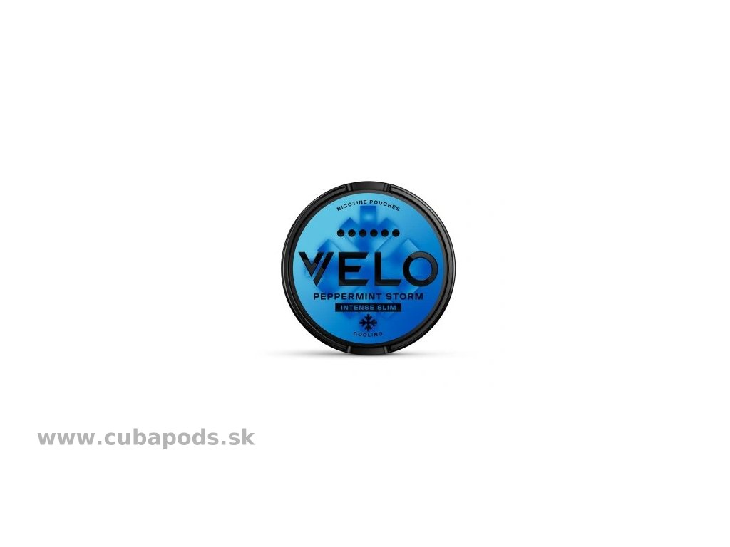 VELO Peppermint Storm ti poskytne fascinujúci silný chladivý pocit, ktorý zasiahne tvoje zmysly a rozvinie sviežu chuť mentolu a krehkej mäty piepornej.