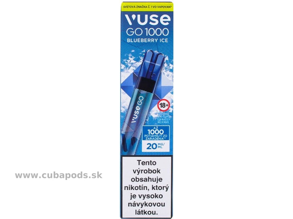 VUSE GO 1000 Blueberry Ice je určená pre dospelých užívateľov nikotínu, ktorí chcú sviežu a chutnú alternatívu fajčenia bez dymu a zápachu. Ideálna na každý deň aj na cesty.