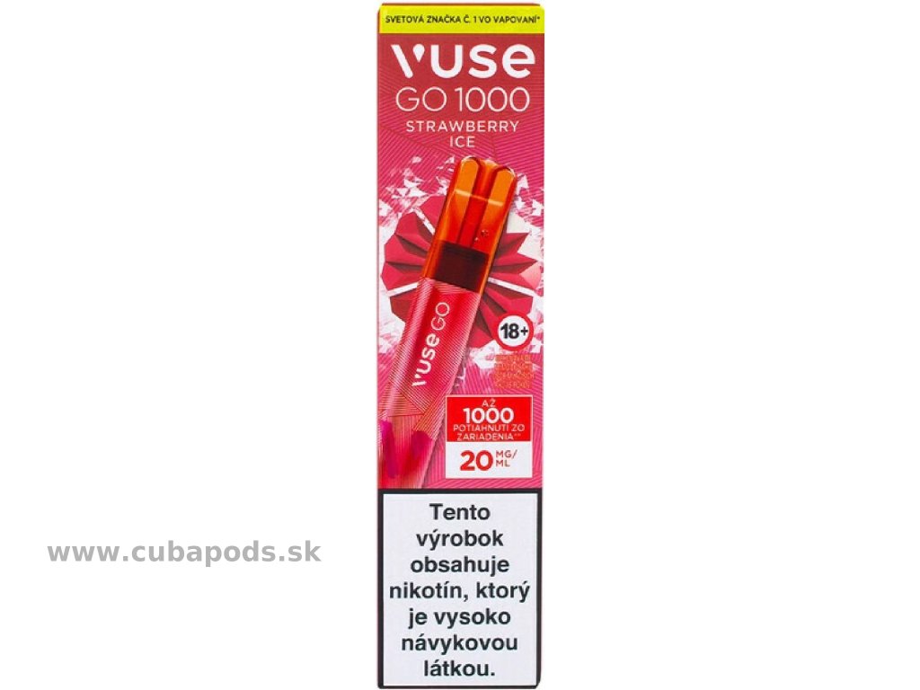 Model VUSE GO 1000 Strawberry Ice je vhodný pre dospelých užívateľov nikotínu, ktorí chcú modernú, chutnú a sviežu alternatívu fajčenia. Bez dymu, bez zápachu a s okamžitým účinkom.