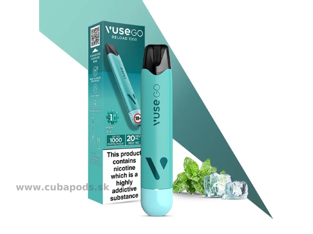 Jednorazová e-cigareta VUSE GO Reload 1000 • Peppermint Ice • 20 mg/ml • 2 ml náplne • až 1000 potiahnutí • mentolová príchuť • 18+