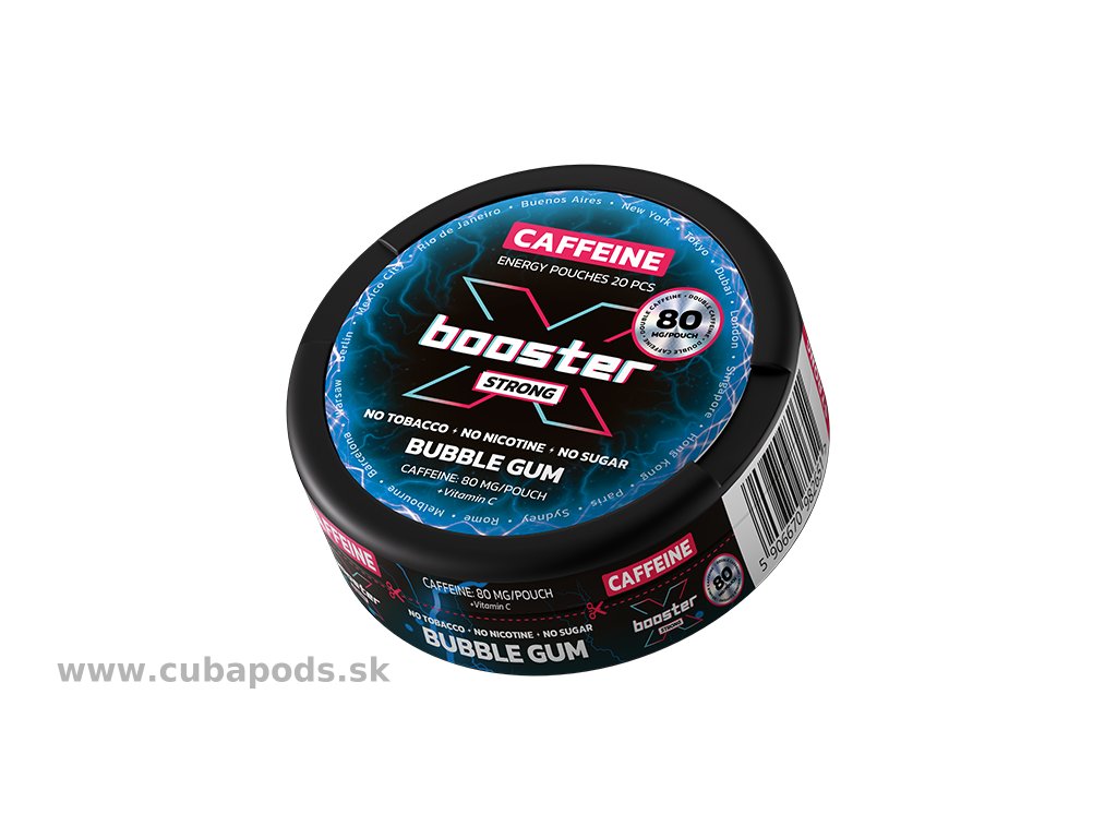 Zaži dvojitú silu s X-Booster Bubble Gum 80 mg – každé vrecúško obsahuje 80 mg kofeínu pre poriadny energetický švih.